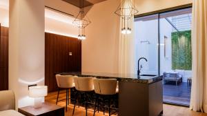 Para ello, se han instalado sistemas de carpintería de aluminio de la marca Cortizo, incorporando el sistema abatible COR 70, los sistemas correderos COR-VISION y la puerta de entrada Millennium Plus, soluciones de referencia en arquitectura residencial contemporánea.